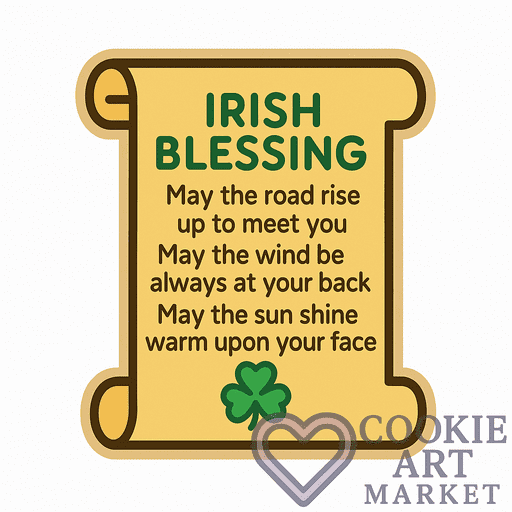 Infuse your baking with a touch of Irish magic! This illustration of a Celtic Blessing Scroll is tailor-made for creating festive cookies. Designed with a minimalist approach, it captures the essence of St. Patrick’s Day in solid colors and a crisp outline.