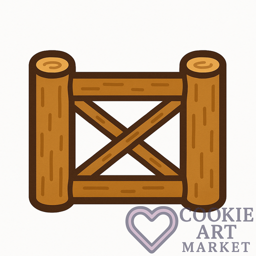 Step into a winter scene with this delightful image of a cozy log railing viewed from the front. Its simple, flat design and solid colors invite you to imagine the warmth of a cabin in the woods, making it a perfect addition for holiday-themed cookies.