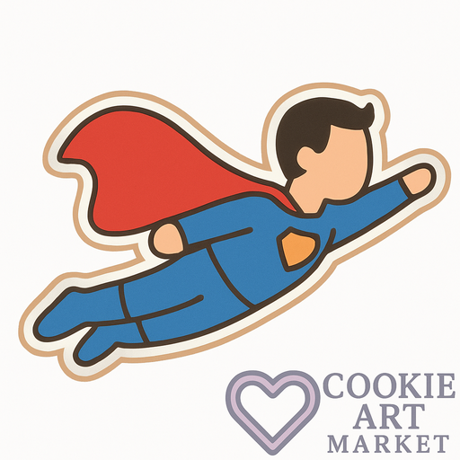 Unleash your inner superhero with this delightful cookie cutter illustration. Featuring a flying cape, this design brings a touch of whimsy and adventure to your baking creations. Ideal for aspiring bakers looking to add a heroic flair to their cookies.