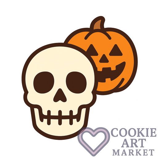 Designed with precision for the holidays, this formal yet festive illustration captures the essence of Halloween. Featuring a skull and jack-o-lantern, the piece is optimized for cookie cutters with a crisp, clean outline and ample padding for the perfect seasonal treat.
