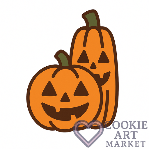 Embrace the season’s charm with this enchanting duo of jack-o-lanterns. Set on a crisp white background, the clean lines and solid colors make it an ideal choice for cookie cutters and festive Halloween celebrations.