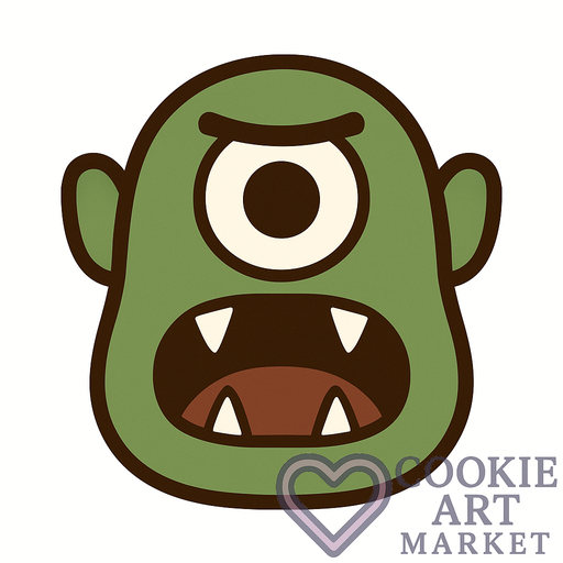 For a formal affair or a festive frolic, this Cyclops cookie cutter illustration offers a simple yet effective design. With its clean lines and bold colors, it is optimized for Halloween-themed baking and sure to be a hit at any seasonal gathering.
