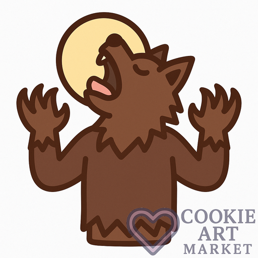 In the moon’s gentle glow, a werewolf stands poised, its howl echoing through the night. This minimalist illustration, outlined in deep brown, evokes the haunting beauty of Halloween, ready to adorn your festive cookie creations.
