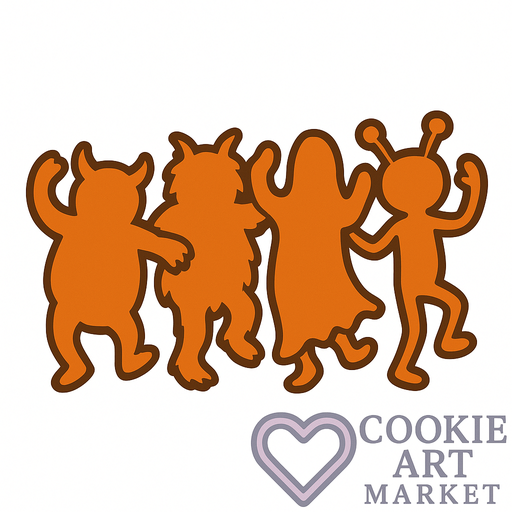 Get into the Halloween spirit with this fun and festive illustration of dancing monster silhouettes! Perfect for cookie cutter designs, these spooky figures are outlined in dark brown and set against a clean white background. No shadows or gradients here, just pure, playful Halloween charm!