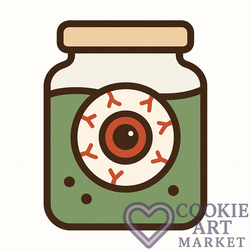 Get ready to spook your guests with this eerie eyeball in a jar cookie design! Perfect for Halloween treats, this creepy illustration combines simplicity with a dash of horror. A must-have for every festive cookie platter.