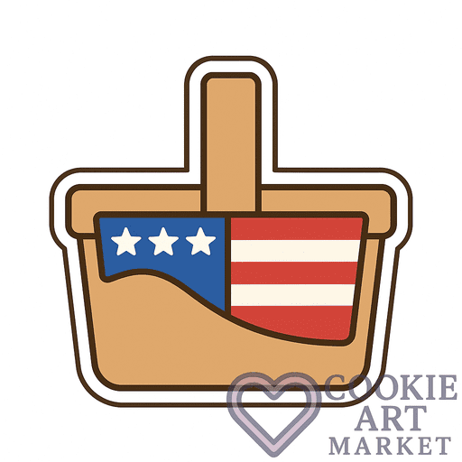 Step into a summer celebration with this delightful picnic basket illustration, ideal for Independence Day cookie designs. The flat, solid colors evoke a sense of nostalgia and festivity, making your holiday treats stand out.