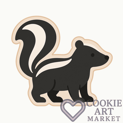 Meet the skunk of your cookie dreams—a whimsical, poetic representation in a minimalist style. Its simple solid colors and clean lines make it a perfect muse for bakers looking to craft a wild animal delight.