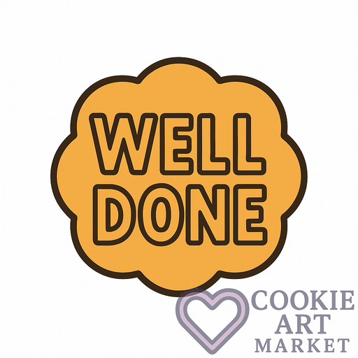 Celebrate success with a stylish ‘Well Done’ cookie illustration! This clipart design, perfect for cookie cutters, features bold colors and a clean outline on a white background, capturing the essence of a job well done.