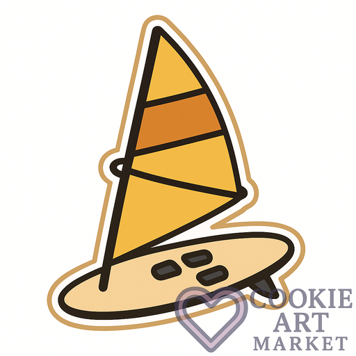 This formal illustration of a windsurf board is tailored for cookie enthusiasts looking to bring a touch of aquatic adventure to their desserts. The flat design and solid color scheme ensure ease of use in cookie cutter applications, making it a practical yet charming addition to any baking repertoire.