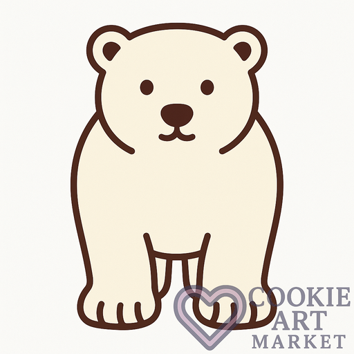 In the serene world of polar wonders, this polar bear stands as a majestic emblem of Arctic beauty. Captured in a flat, minimalist style, the bear’s gentle features and precise outline make it an ideal guide for creating charming cookie designs that echo the purity of its icy home.