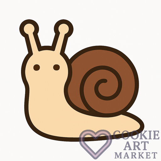 This formal illustration of a snail features a clean, minimalist aesthetic, outlined in a robust dark brown edge suitable for cookie cutter designs. Its pure white backdrop ensures it stands out as a quintessential representation of insect-themed baking art.