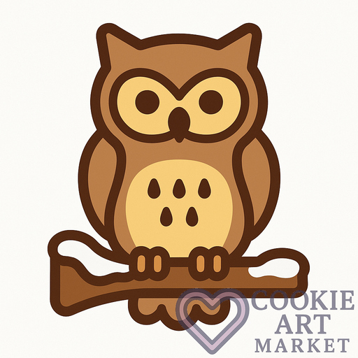 In a winter wonderland, an owl rests on a snow-covered branch. This charming illustration features simple shapes and a bold outline, creating a captivating scene without any shadows or shading.