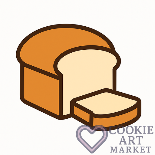 This illustration captures the essence of simplicity with a loaf of bread and a slice cut, perfect for cookie cutter designs. With its solid colors and bold brown outline, it adds a touch of culinary charm to any collection!