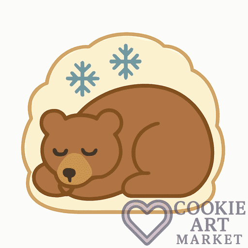 Snuggle up with this adorable hibernating bear illustration, perfect for your winter holiday cookie designs. With its simple, flat style and charming coziness, this bear is ready to nap through the snowiest of days.