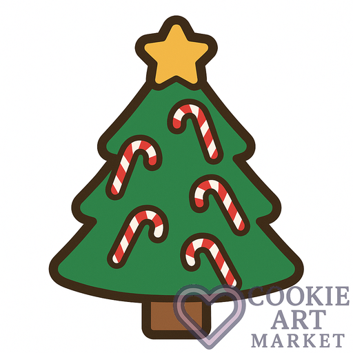 Celebrate the spirit of Christmas with this delightful illustration of a candy cane-decorated evergreen! Optimized for cookie designs, this flat and minimalist image brings a touch of festive cheer to your creations.