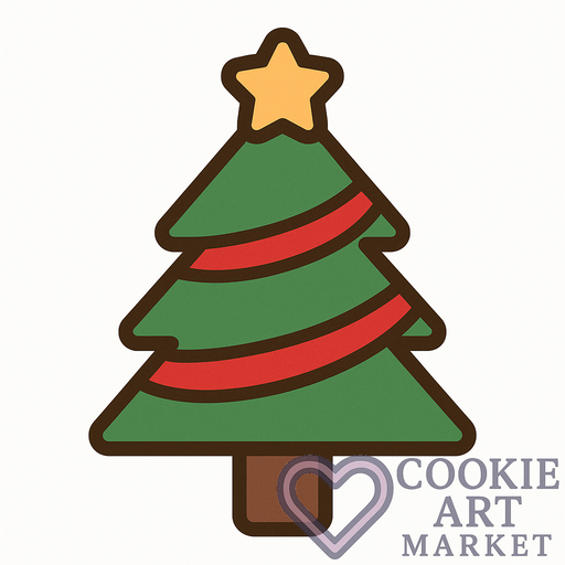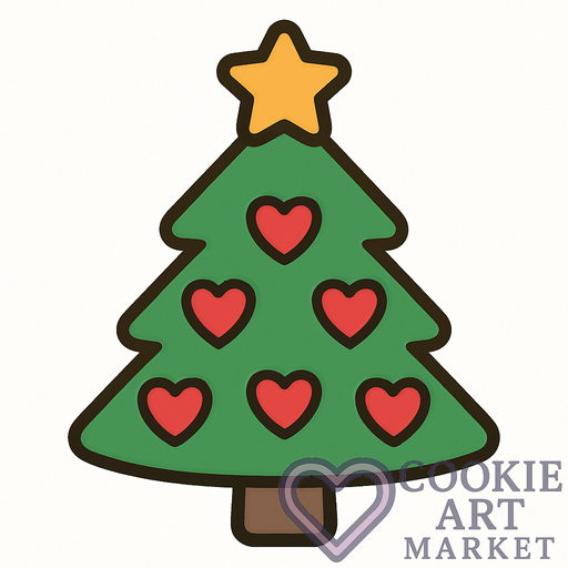 This illustration offers a straightforward and delightful representation of a Christmas tree, perfect for crafting festive cookies. With heart-shaped ornaments and a distinct outline, it embodies the spirit of the holidays through simplicity and elegance. Ideal for both amateur and professional bakers alike.