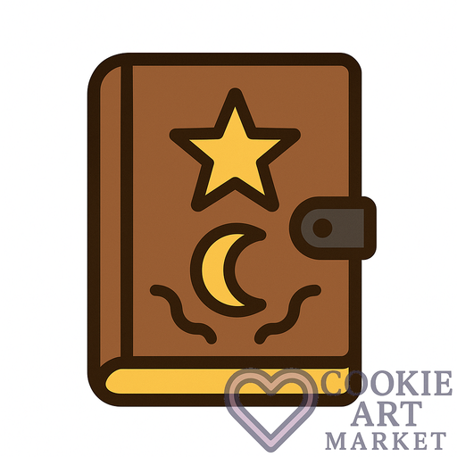 Delve into the mysterious world of magic with our spellbook cookie illustration. Its simple, solid colors and arcane symbols create a bewitching design, perfect for crafting Halloween treats that captivate.