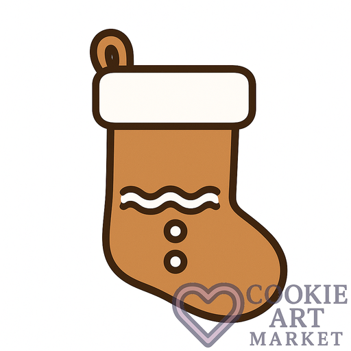 This formal depiction of a gingerbread stocking presents a streamlined illustration crafted for precision. Its no-frills design, highlighted by a 5px brown border, ensures it is both visually appealing and functional for a variety of holiday-themed applications.