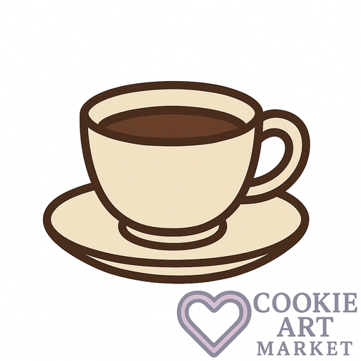 Designed with precision and style, this flat illustration of a teacup and saucer is optimized for cookie cutter art. It features a striking dark brown outline and is crafted with the elegance of solid colors, making it a standout addition to any kitchen-themed collection.