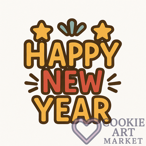 Usher in a fresh start with this elegant New Year cookie design. The ‘Happy New Year’ message is beautifully presented in a stylish festive font, encased in a clean dark outline. With its minimalist approach and solid color palette, this illustration is the perfect addition to any holiday-themed cookie collection.