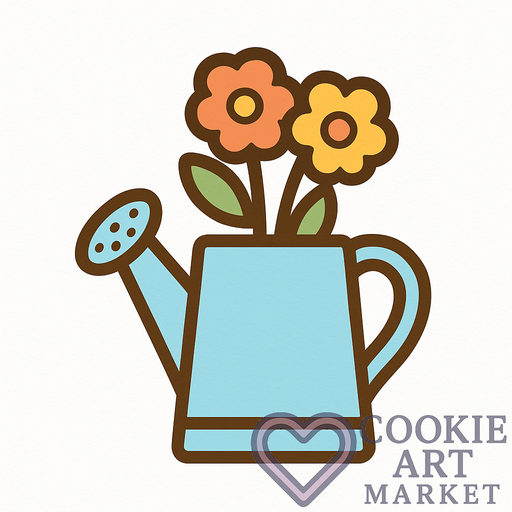 Capture the serene beauty of a garden in bloom with this flat-style watering can illustration, brimming with flowers. This elegant design, encased in a gentle brown outline, is crafted specifically for cookie cutter lovers, bringing a touch of the outdoors to your baking adventures.