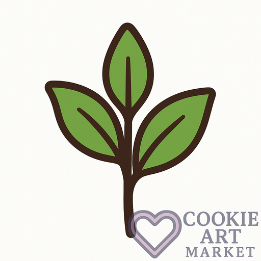 This delightful illustration captures the essence of a tea leaf sprig in a charming clipart style. With a clean design and vibrant green hues, it’s perfectly optimized for cookie cutter creations, framed by a dark brown outline reminiscent of a delicious treat.