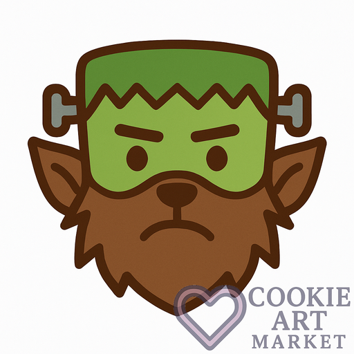 Meet the spooktacular fusion of Frankenstein and Werewolf in this fun, flat-style cookie illustration. With simple, solid colors and a bold dark brown outline, this monster is ready to make your Halloween treats howl with delight!