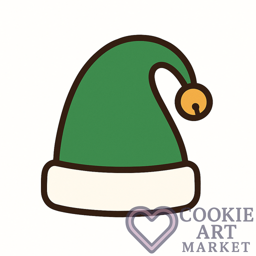 This flat, clipart-style illustration presents a classic elf hat adorned with a bell, designed specifically for cookie cutter applications. With a clean, solid color scheme and a white background, it ensures a festive yet professional appearance, perfectly suited for holiday-themed projects.