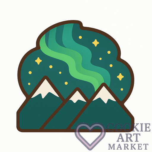 In the embrace of winter’s heart, the Northern lights swirl above steadfast mountains. This minimalist cookie cutter design captures that celestial dance in solid hues, bordered by a warm outline, ready to whisk you away to a festive wonderland with each bite.