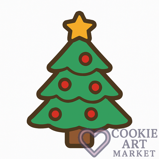 Celebrate the holidays with this charming tree illustration, featuring snowflake ornaments that evoke the beauty of a snowy Christmas. With its simple color palette and precise outline, this design is optimized for cookie cutters, ensuring each baked treat is a festive masterpiece.