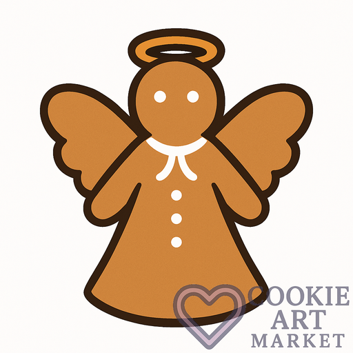 This illustration features a delightful gingerbread angel with delicate wings, perfect for festive decorations. The clean lines and solid colors provide a straightforward design suitable for cookie cutter applications.