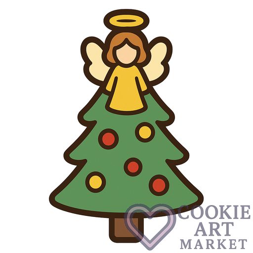 Celebrate the holiday season with a classic symbol of peace and joy. This formal representation of a Christmas tree, crowned with an angel, is rendered in a minimalist style, ensuring it stands out as an elegant centerpiece for festive illustrations.