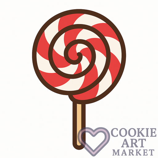 Behold, a charming illustration of a candy cane lollipop! Crafted in a flat, clipart style with a classic dark brown outline, it promises to add a touch of whimsy to any confectionery project.