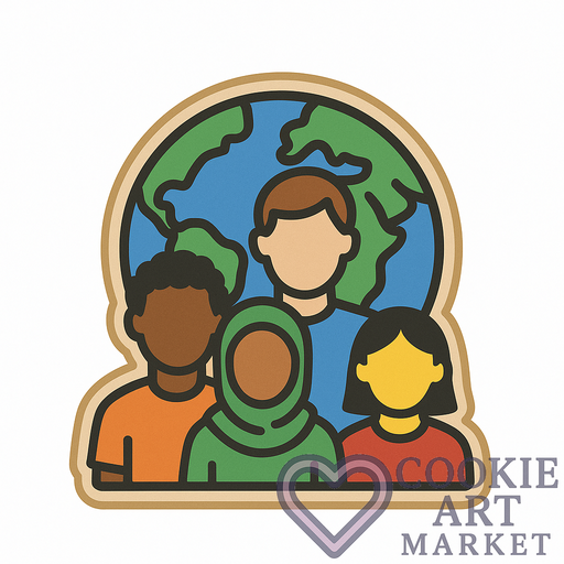 This illustration depicts a Global Family Globe, optimized for cookie cutter use. With its straightforward, flat clipart style, the design emphasizes cultural unity and identity, framed by a delicate outline and presented with precision against a white backdrop.