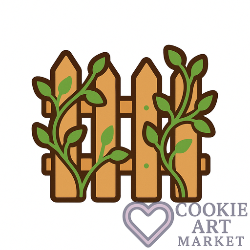 Discover the harmonious blend of structure and nature with this formal depiction of a garden fence entwined with lush vines. The illustration’s clean lines and pure white backdrop make it an excellent choice for cookie designs inspired by the great outdoors.