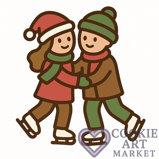 This illustration captures a festive couple enjoying ice skating during the Christmas season. With minimalist design and solid colors, it’s tailored for a delightful cookie cutter presentation.