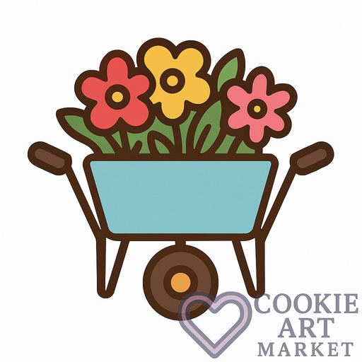 A wheelbarrow brimming with blossoms stands ready to share its floral treasures. This cookie cutter-friendly illustration is a celebration of nature’s simplicity and the joy of gardening, designed with a touch of artistic flair.