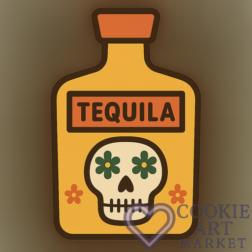 This vibrant illustration captures the essence of Day of the Dead with a striking tequila bottle design. The skull motif adds a festive and authentic touch, perfectly suited for a cookie cutter project in celebration of Mexican traditions.