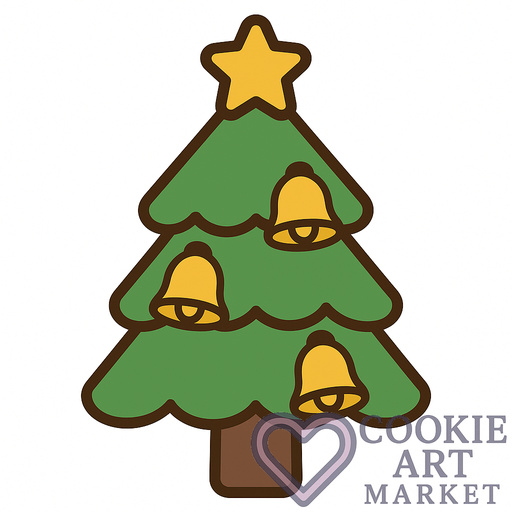 Bring the joy of the holiday season to life with this simple and charming Christmas tree illustration, complete with jingle bells. Designed exclusively for cookie cutters, this flat, clipart-style artwork is sure to add festive cheer to your baking adventures.