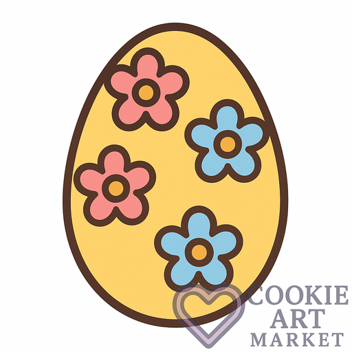 Dive into the spirit of spring with this charming Easter egg illustration. Adorned with delightful flowers and encased in a dark brown outline, this design is perfect for festive cookie cutters. Enjoy the essence of Easter with simple, solid colors on a pristine white canvas.
