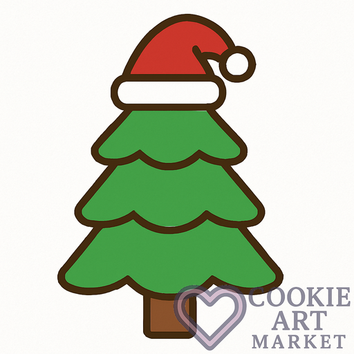 Celebrate the season with a delightful depiction of a Christmas tree adorned with a jaunty Santa hat. This minimalist illustration, outlined in bold strokes, is crafted for your holiday cookie creations.