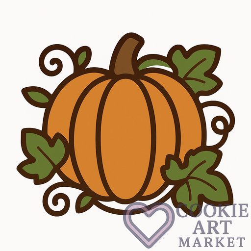 Welcome autumn with this charming illustration of classic pumpkins ready to inspire your next cookie creation. Designed with simplicity and style in mind, it features solid colors and a bold outline, perfect for seasonal celebrations.