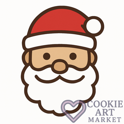 A gingerbread Santa, smiling warmly from his cookie canvas, invites the spirit of Christmas into your kitchen. This flat, uncomplicated design with its rich brown outline and pure white backdrop, transforms a traditional holiday figure into a delightful baking companion.