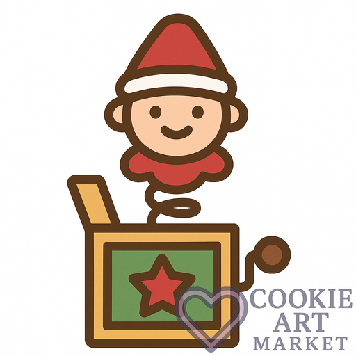 This illustration showcases a classic Jack-in-the-Box toy, designed with simplicity and elegance for the Christmas season. The solid colors and distinct outline make it ideal for cookie cutter designs, offering a touch of festive cheer to your baking creations.