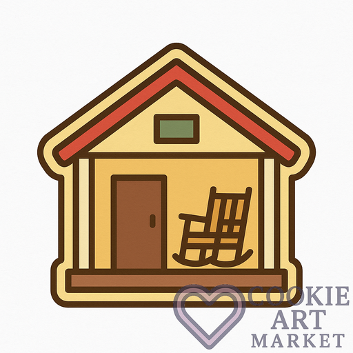Step into the serene simplicity of farm life with this charming clipart illustration of a farmhouse porch, complete with a classic rocking chair. Perfect for cookie cutter designs, this image captures the essence of rustic relaxation with a touch of countryside charm.