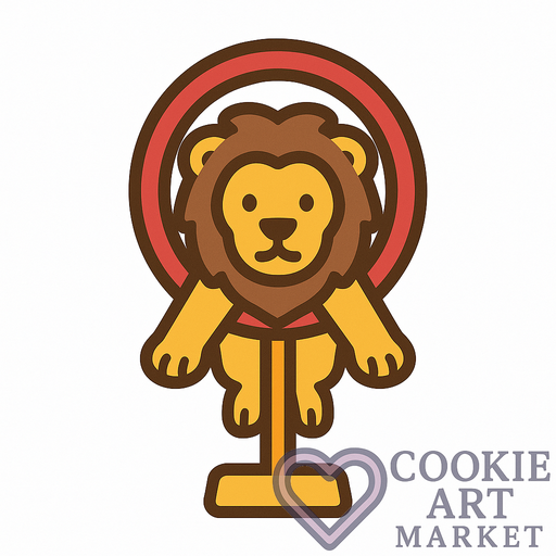 A lion captures the essence of entertainment, gracefully jumping through a hoop. The flat design is outlined in dark brown, ideal for cookie cutter enthusiasts!