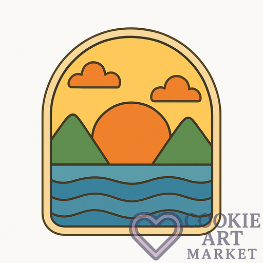Immerse yourself in the tranquility of nature with this sunset-themed cookie illustration. This piece, defined by its simple lines and solid hues, evokes the enchanting transition of day to night, all while adhering to a clean and neat design philosophy.