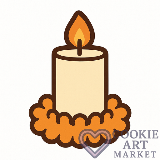 In this poetic portrayal, a single candle stands warmly embraced by marigold petals, casting a glow that’s both heartfelt and celebratory. Crafted for cookie cutter magic, it embodies the essence of remembrance and festivity in a harmonious, solid-colored design.