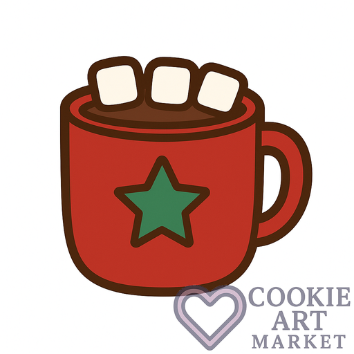 Warm up your winter festivities with this simple and charming illustration of a hot cocoa mug topped with fluffy marshmallows. Perfect for adding a touch of holiday cheer to your cookie designs, this image captures the cozy essence of Christmas in a minimalistic style.