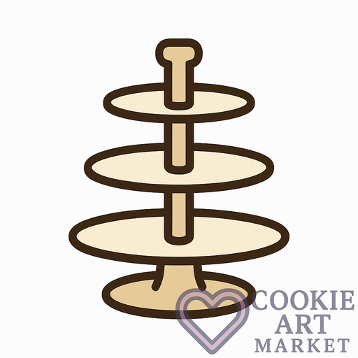 This simple yet elegant illustration of a tiered cake stand captures the essence of kitchen chic in a playful way. Its solid colors and dark brown outline make it perfect for cookie cutter designs.